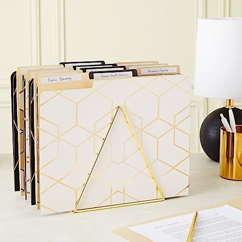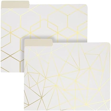 Gold Office Supplies: Our modern file folders set includes 12 filing cabinet folders featuring geometric and gold designs; the vibrant colors will instantly elevate your desk or office decor; ideal for school, students, and professionals