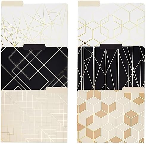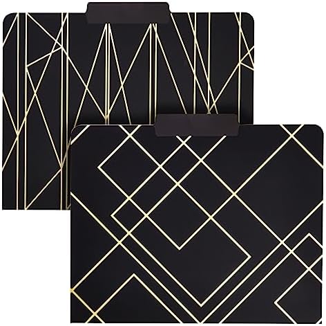 Add this 12-pack of heavy-duty beige, white and black file folders to your office supplies to stay organized and motivated in style. Office organization has never been easier, as our gold file folders feature 1/3 cut tabs so you can quickly identify files, receipts, bills, and important documents. This set features 12 total file folders letter size; these cute file folders for women measure 11.5 x 9.5 inches and feature a vibrant geometric design.