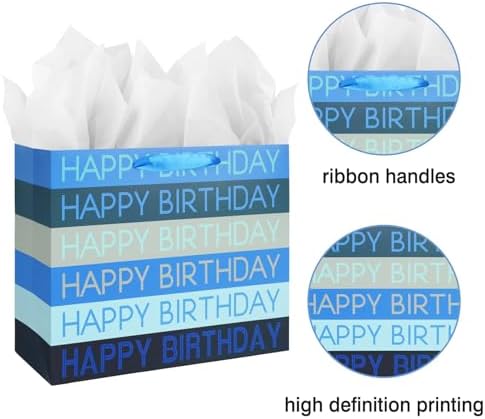 Applicable: The blue gift bag with tissue paper is perfect for Men Birthday Party, Kids’ Parties,father’s birthday day, boyfriend birthday and so on.