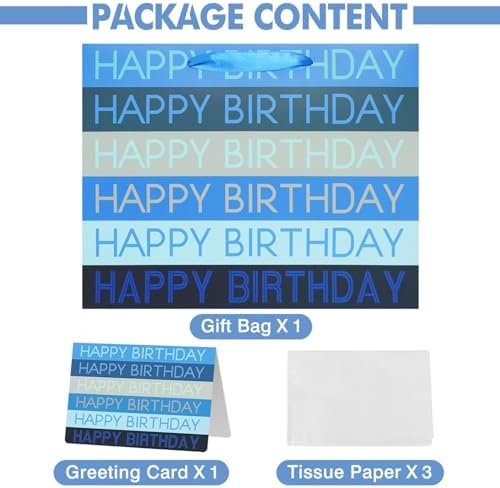 Package Includes: 1 large birthday gift bag, 3 tissue paper, 1 greeting card, great for all kinds of birthday needs.
