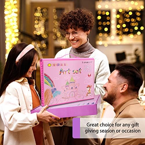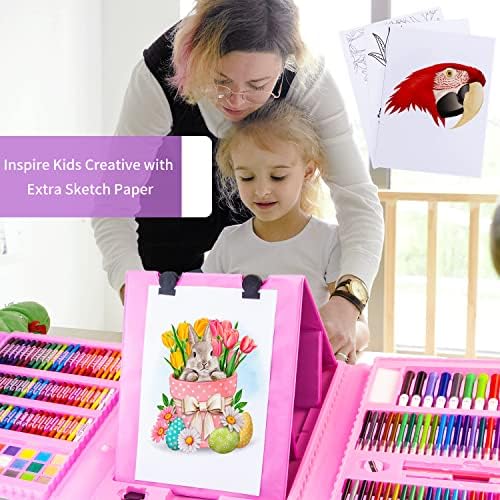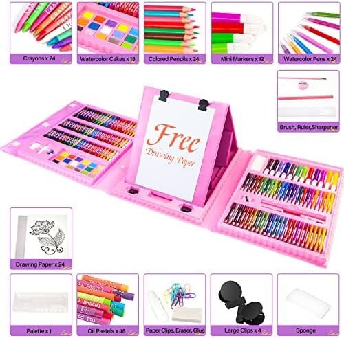 Art Supplies, 241-Piece Drawing Art kit, Art Set Case with Double Sided Trifold Easel, Includes Oil Pastels, Crayons, Colored Pencils, Watercolor Cakes, Sketch Pad (Pink)