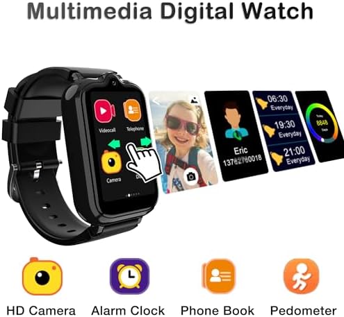 👍⌚【SOS Watch for Kids】Kids cell phone watch has a SOS(power) button.When kids encounter an unexpected situation, they can press this button for about 5 seconds, the kids smartwatch boys will circlely call family numbers and send message to the guardians. You can add 3 numbers of guardians in advance.4G smart watch for kids 10-12 can also add 15 phone numbers for daily calls.GPS tracker for kids with calling supports two-way high-definition call which is very simple to communicate with child.