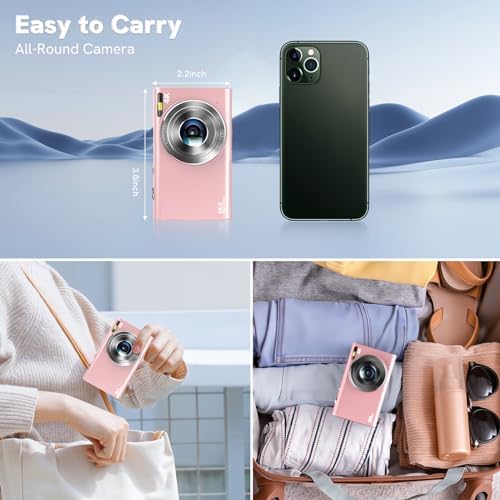 📸【Two batteries included & Easy to carry】 📸 This portable mini digital camera is very light and small, smaller than a smartphone, you can easily put it in your pocket and carry it anytime, anywhere. Two 700mAh large capacity batteries are included, has longer battery life, and is convenient for you to replace the battery and keep the camera powered up at any time. Small and light, easy to carry, you can shoot while charging.