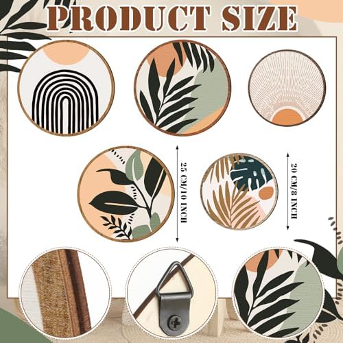 Proper Size for Display: there are 2 kinds of sizes of the aesthetic wall art, 3 bigger ones measure about 10 inches/ 25 cm in diameter, and 2 smaller ones are about 8 inches/ 20 cm in diameter, all of them are about 0.2 inch/ 0.5 cm in thickness, proper size to catch people’s attention