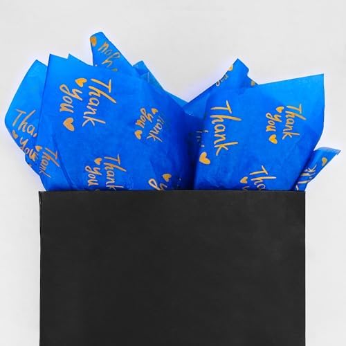 Gold Thank You Design:The tissue paper has navy background and gold thank you pattern on it. It’s very beautiful.Perfect Navy thank you tissue paper for small business.
