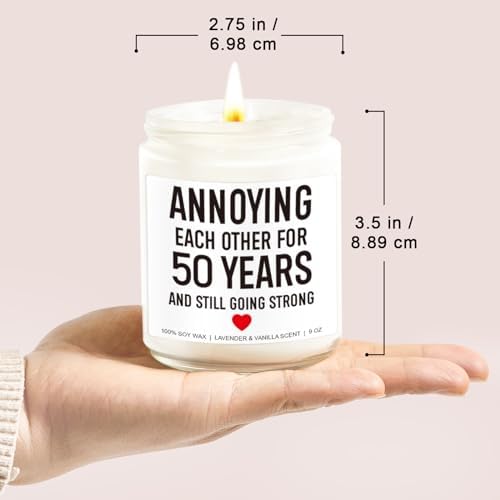 This annoying each other for 50 years candle is the perfect 50th anniversary gift idea for parents, couples, husbands, wives, or friends who are celebrating their special milestone