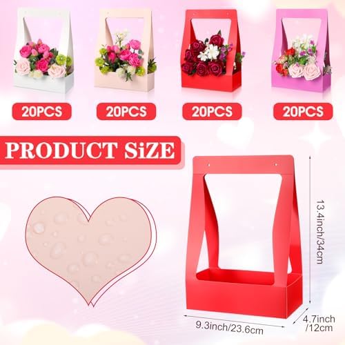 Flower Gift Bags Bulk: you will receive 80 pieces of exquisite flower bouquet bags, 4 bright colors, 20 pieces of each color, the size is about 9.3 x 4.7 x 13.4 inches, sufficient quantity to meet your flower packaging and wrapping needs, and can also be shared with family and friends