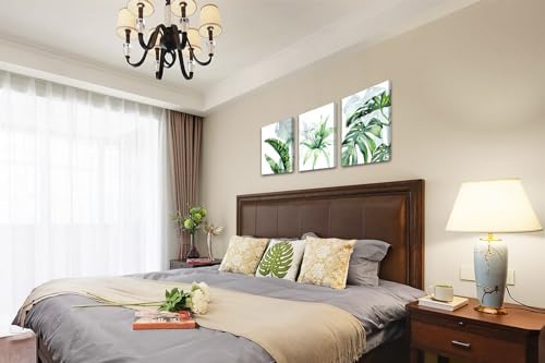 🍀 Leaf canvas wall art: Minimalist plants nature wall art botanical leaves, monstera canvas print modern simple small size 12″ x 16″ x 3 panels, gallery wrapped ready to hang.