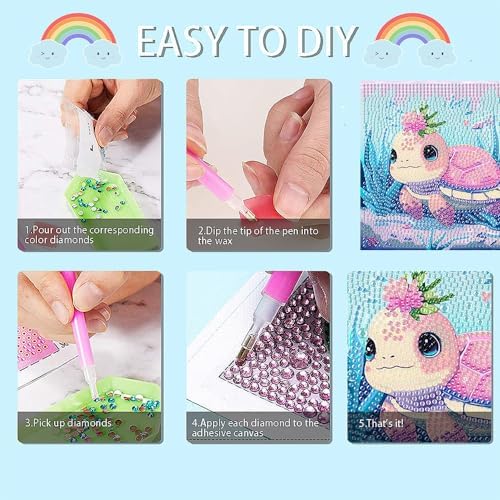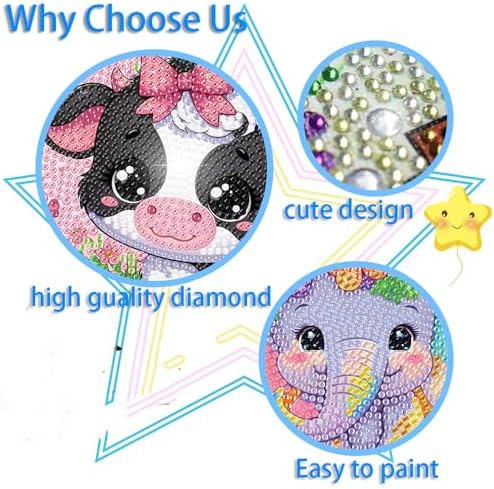 💎Play with Fun💎Our cartoon gem art painting kit is designed for children aged 8-12 years old, the different colors of diamonds and the corresponding numbered dots on the canvas are easy to distinguish, so it is not a difficult task.All the diamond art tools are included and all the pieces were easy to work with and very sturdy, remove the adhesive, grab stylus and pick up and place gems where you want them it is easy to do this project.