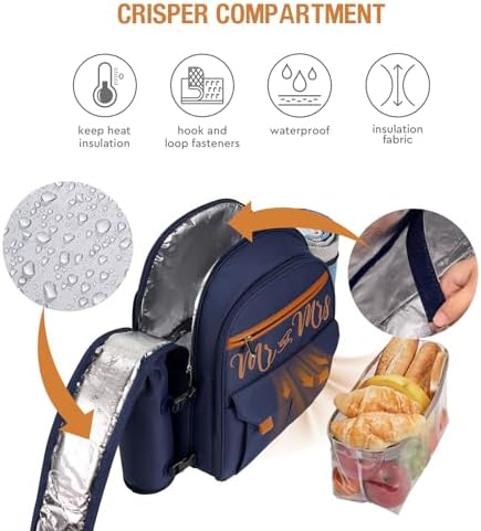 🎒LARGE CAPACITY & WELL EQUIPPED: Size: 12(L)x7.5(W)x15(H) inches, 5.2 lb; The 22L high-capacity picnic backpack big enough to accommodate the ingredients needed for a picnic. Includes a full set of camping accessories: backpack cooler, picnic blanket, wine bag, cutlery and cutting board, etc. The camping backpack bag is made of 100% polyester fabric and 5mm PE foam and PU layer, which can keep the hot/cold/fresh for hours.