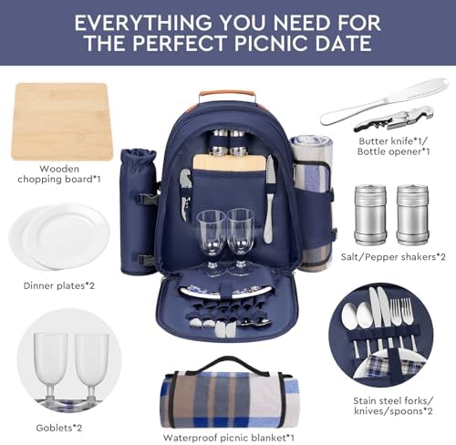 💐PERFECT FOR EVERY OCCASION: Thanks to the practical design and thickened shoulder straps, this backpack can be carried comfortably to any romantic place. Whether hiking, camping, beach, park, date night or movie night, this picnic backpack is durable and high quality.