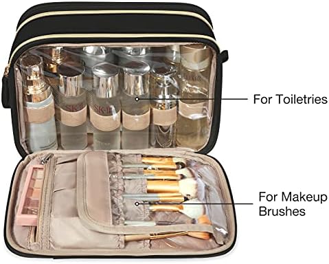 Double Side Full Open Design: Double side full open design keeps cosmetic bottles can stand upright in the middle compartment. Both sides pockets are design for makeup brushes, eyeshadow palette and other cosmetics