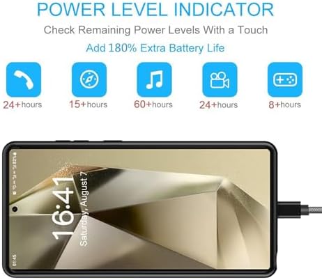 【12000mAh High Capacity Last Longer】This Galaxy S24 Ultra battery case provides 150% extra power with build in 12000mAh lithium Ion. NOTICE : NOT compatible with Galaxy S24 , Galaxy S24 Plus . (Quick charging cable included)