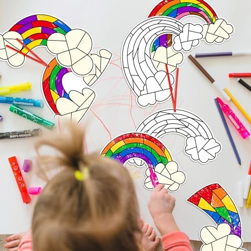 Quality Material : Color your own rainbow cards are made of sturdy and reliable cardboard material, designed to be durable and not easily tear or faded; these cards measure approximately 6 inches, which makes them easy to carry around but sufficiently sized to allow detailed and colorful artwork, suitable for both kids and adults.
