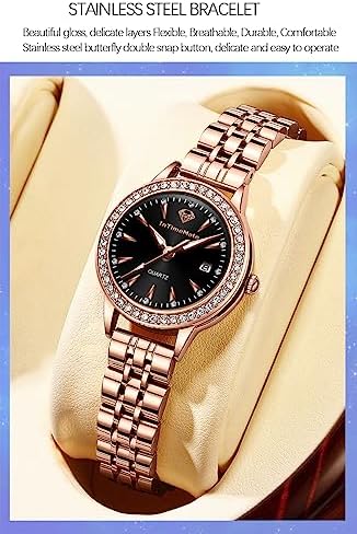 Bling Watches for Women Updated Ladies Quartz Stainless Steel Band Womens Small Rose Gold Watch Luxury Casual Fashion Bracelet Watches