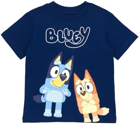 Fashionable t-shirt and legging set featuring a colorful rainbow design and artwork of Bluey and Bingo. Comes with a matching scrunchie. Cool pack of 2 fleece jogger pants with convenient side pockets featuring cute Bluey and Bingo artwork. Comfortable for everyday wear. Soft and cozy blue hoodie with a cute cosplay style hood featuring Bluey’s face and 3D dog ears. Keeps your child warm and comfy. Adorable orange jumpsuit designed to look like Bluey’s sister Bingo with a cosplay-style hood featuring Bingo’s face and 3D dog ears. Colorful tankini swimsuit set featuring artwork of Bluey and Bingo on the beach. Perfect for playing in the water on those sunny summer days. Cute short sleeve graphic tee with fun artwork of Bluey, Bingo, Bandit, and Chilli and the words “Can’t Stop Dancing.” Adds style to any outfit.