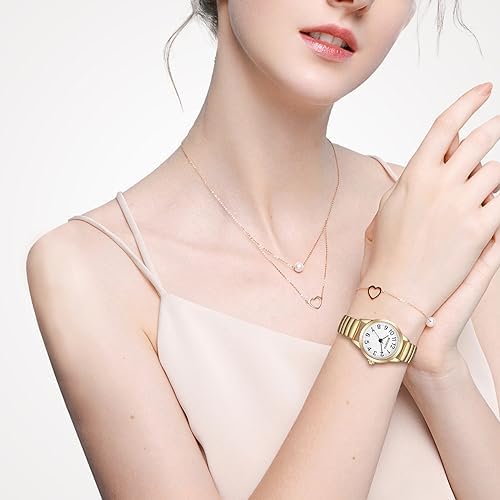 Elastic band gold wristwatch suitable for women in all ages, teenagers, adult, old people.Ideal for multiple occasions, working, shopping, parties, studying, engagement, wedding, etc.Match all you clothes and accessories. Ideal for casual and normal occasions.Ideal gift for Mothers Day, Christmas, Valentine’s Day, Birthday, Anniversary, etc.