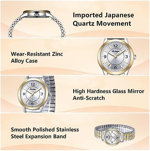 Luxury Ladies Watches with Stainless Steel Two-Tone Gold Silver Expansion Band