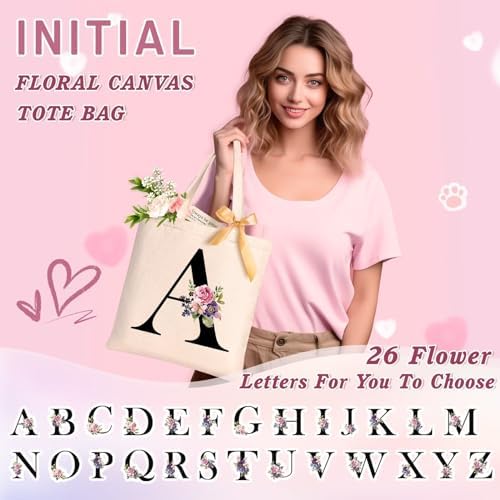 【Personalized Gifts for Women】You will receive 1 piece of floral tote bag and 1 piece of personalized makeup bag with the same monogram. This personalized canvas set bag is perfect as a gift for your mom, grandma, teacher, friend, sister, colleague, boss, bridesmaid on Mother’s Day, Teacher’s Day, wedding, graduation, Christmas, Valentine’s Day, and other holidays