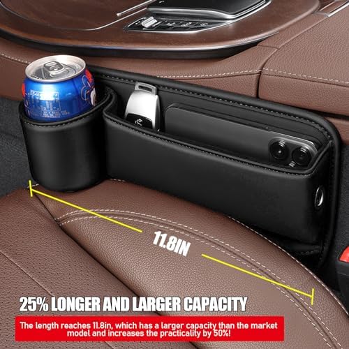Car Leather Cup Holder Gap Bag,Car Seat Gap Filler,Adjustable Car Seat Storage Box,Front Seats Adjustable Gap Filler for Car Suv Truck(Black)