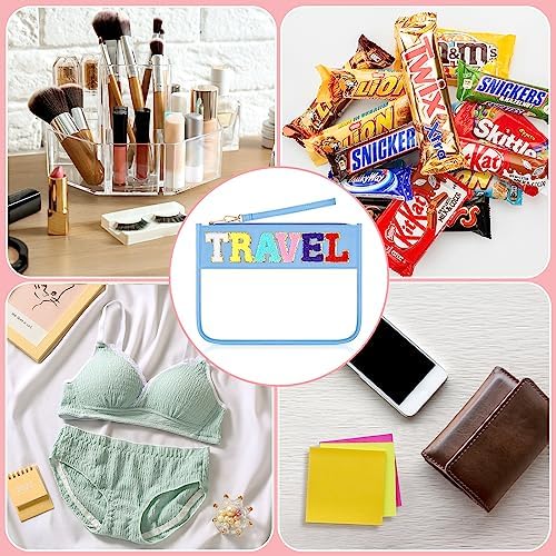 【Sorting and Storage】To make it easier to sort items, we have sewn different types of chenille letters on the front of the women makeup bag, such as “PARTY” for party make-up items, “SNACKS” for snacks, “TRAVEL” for travel items and “STUFF” for other everyday items. The letters are coloured and sturdy and will not come off. The glittering letters make this clear travel bag even more fun and personalised and keep everything just in order, a great organisational tool.