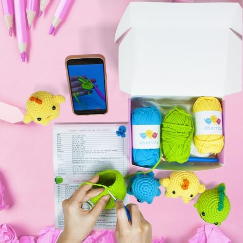 Be the first to review “Cheritta Crochet Animal Kit for Beginners – 3 Patterns: Chick, Octopus, Dino | Knitting Kit for Adults and Kids with Step-by-Step Video Tutorials, Yarns, Hooks, and Accessories”