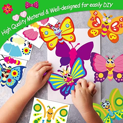 【Premium Material】Our spring butterflies paper craft kits are colourful printed for kids, the butterflies cards and stickers are made of double-sided laminated card and sticker, making them tear-resistant, water-proof, no smell and harmless to children.The spring butterflies kids crafts are designed in vivid patterns and will sure attract children.