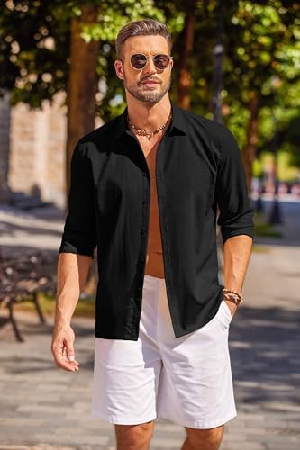 COOFANDY Men’s Cuban Guayabera Shirt Long Sleeve Casual Button Down Shirts Beach Linen Shirt