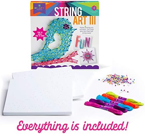 COMPLETE ARTS & CRAFTS KIT FOR TWEENS AND TEENS—The String Art Kit includes detailed instructions, 3 different 8.5” pre-printed sturdy foam canvases, 60 yards of thread, and 170 pins. Everything you need for three fun art projects!