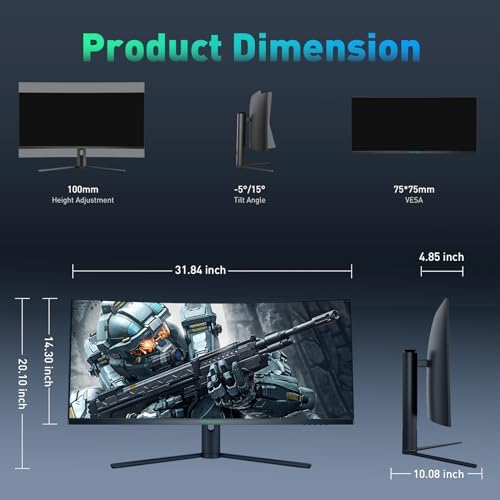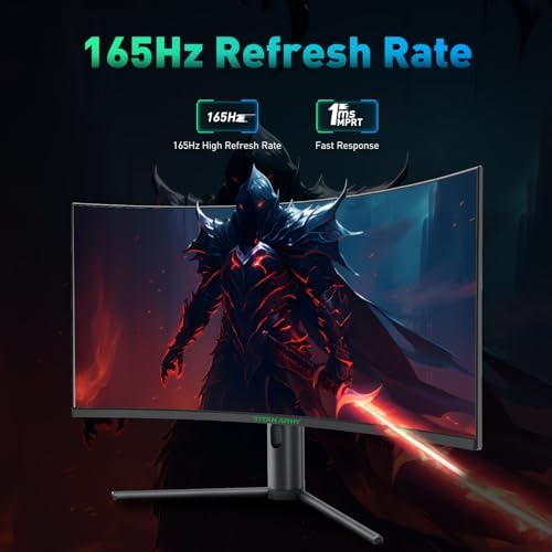 【165Hz Lightning-Fast Performance】TITAN 34 inch curved gaming monitor with 165Hz high refresh rate, surpassing standard 60Hz monitors, this feature ensures smoother and more responsive gameplay. With a rapid 1ms MPRT response time and Adaptive-Sync technology, enjoy gaming with over 2 times the responsiveness, providing an almost lag-free experience for swift and precise targeting