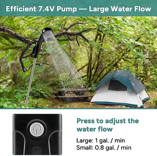 [Easy to Use] You’ll be amazed at how easily to get the water flow and how quick the setup is. Once assembled, you place the pump in your water source, turn it on, and you have a “”shower””! Just being able to spray off the sweat and dirt after a day of hiking feels like a dream come true. “