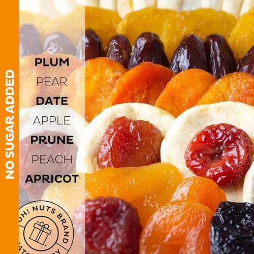 🍎Holds a variety of juicy Washington apple slices, California dates, sweet prunes, tangy Mediterranean apricots, delicious yellow California peaches, and mouth-watering pears.
