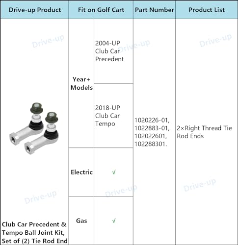 Drive-up Ball Joint Kit, Club Car Precedent Tie Rod End for Club Car Precedent 2004-Up and Club Car Tempo 2018-Up 2Pcs Right Hand Thread OEM 1022883-01 1020226-01