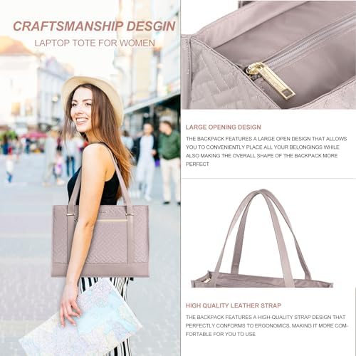 Large Capacity Design: The laptop tote bag for women divied into three parts, A padded pocket for 15.6-inch laptops, and an iPad pocket provides a thick padded section. The padded design can protect your laptop from accidental impacts and scratches, and the large opening design makes it easier to place things in the handbag. The backpack features a large zippered pocket for personal items, a sliding pocket, and a pen pocket for storing your ID card, wallet, and more.
