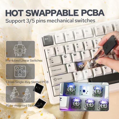 【Hot-Swappable PCB&Pre-lubed Linear Switches】Enjoy the flexibility of personalizing your typing experience with the F99’s full-key hot-swappable sockets. It supports 3/5 pin mechanical switches. Easily interchange mechanical switches to suit your preference with a simple pull-and-plug method. Additionally, all switches are factory pre-lubricated and have been meticulously designed for longevity and durability, ensuring a reliable typing experience for years to come.