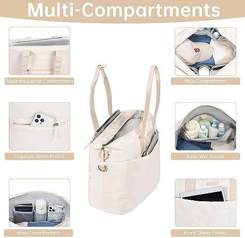 ETRONIK Tote Bag with Zipper, Laptop Tote Bag for Women with Pockets, Large Tote Bag Purse with Laptop Compartment, The Tote Bag Shoulder Bag for Travel Work Gym Overnights Weekend Trips, Beige
