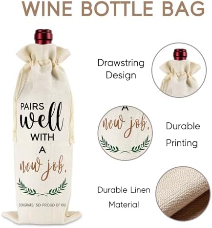 Funny new job gifts for women and men; There are two funny sayings printed on the candle and the wine bag respectively, they are “this candle smells like a new chapter of your life. Congratulations!” and “pairs well with a new job. Congrats, so proud of you”; This gift set is all about celebration and joy, It’s a thoughtful way to express your congratulations and support for your friends, coworkers, best friends, boss, mentor, or anyone is ready for a new job in their life