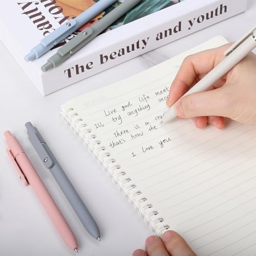 0.5mm Quick-Drying Ink Pens: 0.5mm Retractable Rolling Ball Gel Pens with fade-resistant ink, there’s no need to worry about getting ink on your hands or desk, as it won’t fade, bleed, or smudge. Note: After using the gel pen, it is suggested to lay the pen flat or the nib face up. This helps protect the pen tip.