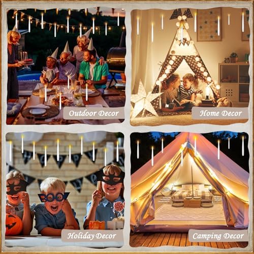 ⭐ 𝐄𝐅𝐅𝐎𝐑𝐓𝐋𝐄𝐒𝐒𝐋𝐘 𝐂𝐎𝐍𝐕𝐄𝐍𝐈𝐄𝐍𝐓 & 𝐄𝐀𝐒𝐘 𝐓𝐎 𝐔𝐒𝐄 – TLPUHU Hanging candles with string, white flameless candles come with pre-strung fishing line, 20 adhesive hooks, and all necessary accessories for easy installation. Effortlessly enhance your decor by hanging them anywhere you desire, such as on your Christmas tree, bedroom ceiling, walls, windows, fireplace, porch, or elegantly placing them on a shelf or table. Customize your space with ease and creativity.