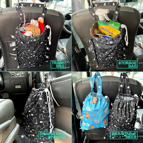 MULTI-PURPOSE – It can be used as a car trash bag to hold garbage. It can also be used as an adjustable storage bag to store toys, car care products and accessories to meet your travel needs.