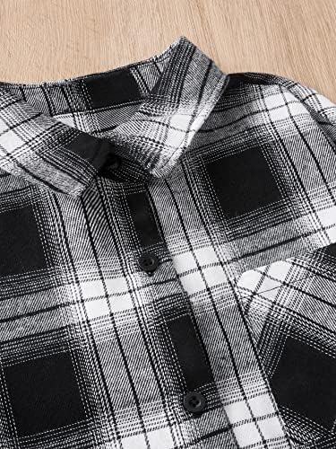 Floerns Girls 3 Piece Outfits Bell Bottom Outfit Cami Top and Flare Pants Set with Plaid Print Shirt
