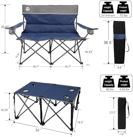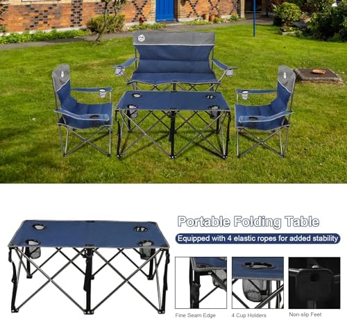 Be the first to review “Folding Camping Chair Set of 4,Portable Collapsible Conversation Set w/1 Sofa,2 Single Chairs and 1 Table for Family Patio,Outdoor Travel,Beach(Blue)”
