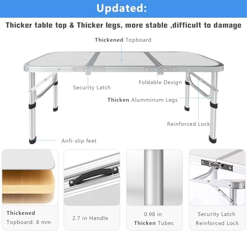 Be the first to review “Folding Camping Table Small with Storage Bag,Adjustable Height Portable Picnic Table,Upgraded Thickening Lightweight Outdoor Table Aluminum Legs (Sliver:15.7″x35.4″, 2 Height:9.8″/19.7″)”