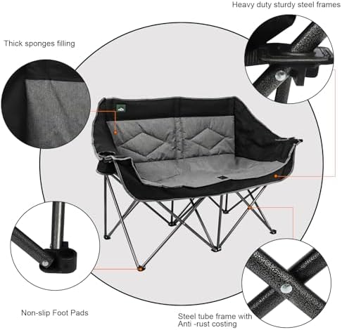 Be the first to review “Folding Loveseat Camping Chair Portable Double Duo Full Padded Garden Sofa Chair for 2 Person w/ 2 Cup Holder,Wine Glass Holder,Support 600lbs for Outdoor Travel (Black)”