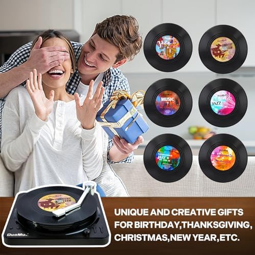 ★ PERFECT FOR MUISC LOVER–Set of 6 with a retro vinyl record player holder in a wonderful design gift box, they look like real vinyl records, every detail, cute and cool, great gifts for music lovers.