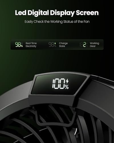 3 Gear Speed Desk Fan with Lights: The clip fan has 3 adjustable speeds, one button to the most comfortable wind speed. The personal fan with 8 LED beads, a nice camping essentials can providing ideal light source on night. LED display screen can show speed and remaining battery capacity during charging. NOTE: Brightness CANNOT be adjusted