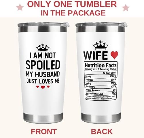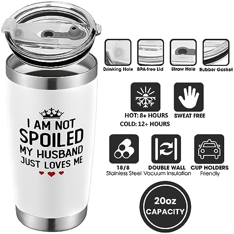 SAFE & DURABLE STAINLESS STEEL MATERIAL SPOILED WIFE CUP: Made of food grade 304 stainless steel material, this Wife Tumbler Cup is sturdy, reusable, lead-free, not easy to damage, and gently fits into most cup holders. The BPA-free lid prevents liquid splashing which allows you to enjoy your drink safely.