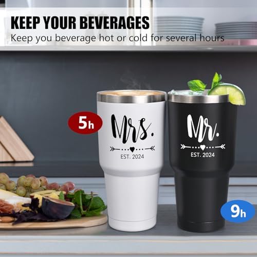 MR AND MRS GIFTS: This Mr and Mrs EST 2024 travel tumbler set will be a romantic gift for couples, newlyweds, mr and mrs, her, him, bridal, bride to be, friends, sisters, his and her, wife, husband. Wonderful and meaningful gifts to express love or congratulation on anniversary, valentines day, birthday, wedding, wedding registry or any special days of couples.
