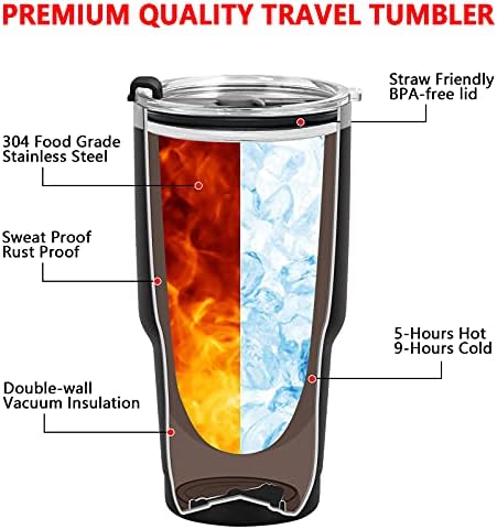 GOOD INSULATION: The mr and mrs gifts travel tumblers can maintain the ideal temperature of drinks for a long time. According to testing, it can keep drinks hot for 5 hours and keep cold for 9 hours. Due to the double wall insulation design, even if the insulated tumbler is filled with iced or boiled drinks, the tumbler surface will never get cold or hot to touch.