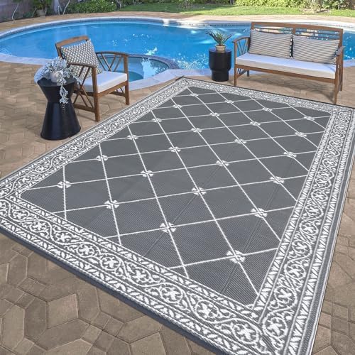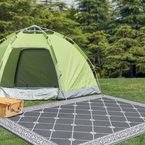 Reversible Mats: This outdoor rug is reversible, two-sided design allows you to have two different looks with one quick flip.Plastic Straw Rug: Made from recycled plastic staws, along with edging that is heat treated to reduce fraying, soft and durable.Low Maintenance Patio Mat: Simply shake off dirt or spray clean with a hose, water on the surface will air dry quickly.Easy to Carry: This outdoor carpet can be folded into a compact size and carried directly in your car when you go out for an outing.Versatile: The camping rug is great option to elevate any entertainment space including patio, garden, beach, picnic, rv camping.